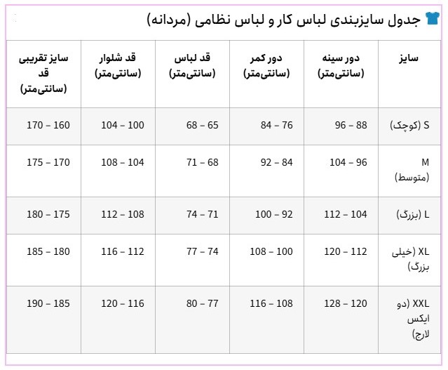 بله، تمامی محصولات ما با توجه به شرایط کاری و آب‌و‌هوایی مناطق مختلف طراحی می‌شوند. از لباس‌های زمستانی ضخیم و گرم گرفته تا مدل‌های خنک تابستانی، همگی با پارچه‌های استاندارد و مقاوم تولید می‌شوند تا در هر فصلی بیشترین راحتی را برای شما فراهم کنند.
