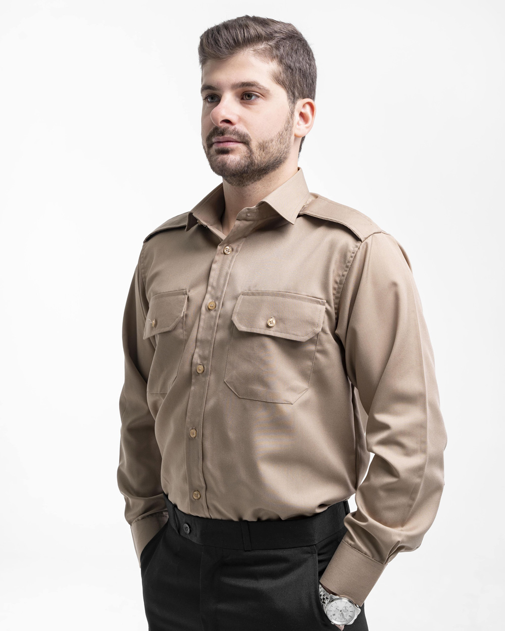 پیراهن قهوه ای دو جیب اداری